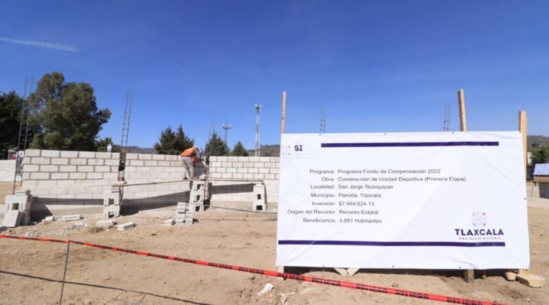 La gobernadora Lorena Cuéllar Cisneros supervisó los trabajos de construcción de la Unidad Deportiva en la comunidad de San Jorge Tezoquipan del municipio de Panotla, la cual tendrá una inversión de 7 millones 464 mil 624 pesos, con el objetivo de brindar a las y los habitantes un espacio recreativo y de sano esparcimiento.