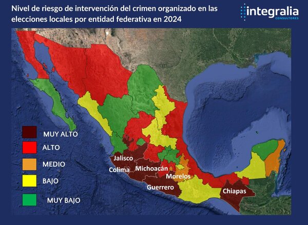 - El análisis revela un mapa detallado de los riesgos de intervención del crimen en el proceso-electoral 2023-2024