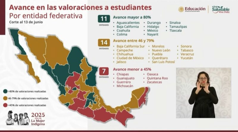Mientras, Chiapas, Guanajuato, Guerrero, Michoacán, Oaxaca, Quintana Roo y Zacatecas llevan menos del 45 por ciento de valoraciones al corte del 13 de junio del presente año.
