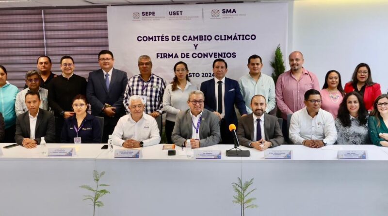 El secretario de Educación Pública del Estado (SEPE), Homero Meneses Hernández, encabezó la presentación de Comités de Cambio Climático en instituciones de educación básica, media superior y superior de Tlaxcala, públicas y privadas, así como la firma de convenio de colaboración con la Secretaría de Medio Ambiente (SMA) y las Asociaciones Civiles 3R y Serpiente de Hojas.