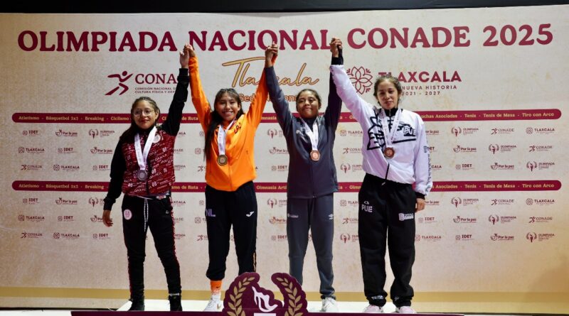 Tlaxcala continúa destacando en la Olimpiada Nacional CONADE 2025, sumando tres nuevas medallas en la disciplina de luchas asociadas, estilo femenil, fase 4, gracias a la destacada participación de las atletas Amairani Potrero, Fernanda López y Renata Tezmol.