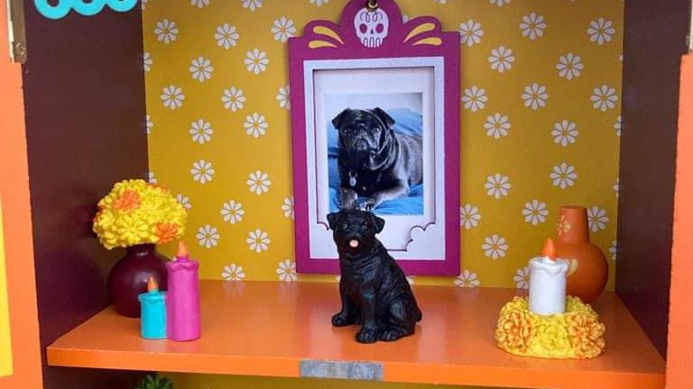 Algunas personas, muy apegadas a sus mascotas, los creman y conservan sus cenizas, por eso también han optado por colocarlas en la ofrenda dedicada a sus familiares y seres queridos, acompañadas de veladoras y la foto del perro o gato, como una forma de indicarle que es parte de la familia y tiene un espacio ahí.