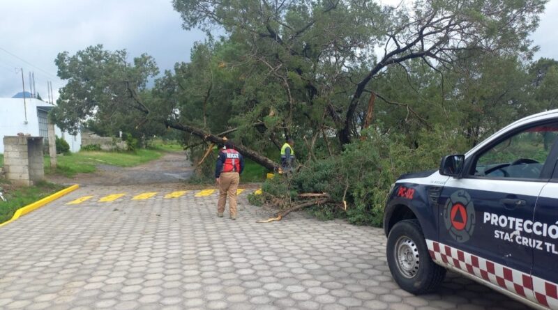 Trabaja PC de Santa Cruz Tlaxcala apoyando en inundaciones y caídas de arboles