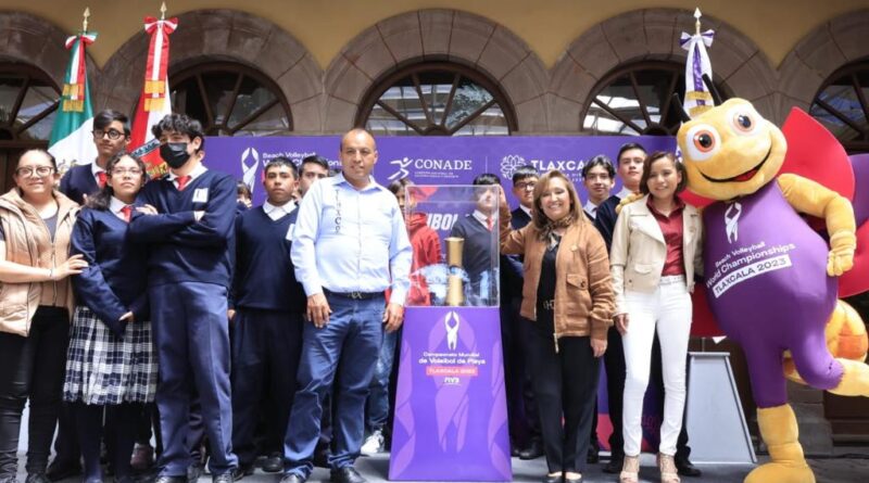Con la finalidad de invitar a la población a sumarse al Mundial de Voleibol de Playa Tlaxcala 2023, la gobernadora Lorena Cuéllar Cisneros y el presidente municipal de Tlaxco, Armando Flores López, develaron el trofeo que será entregado a los finalistas de la competencia internacional, a realizarse del 5 al 15 de octubre.