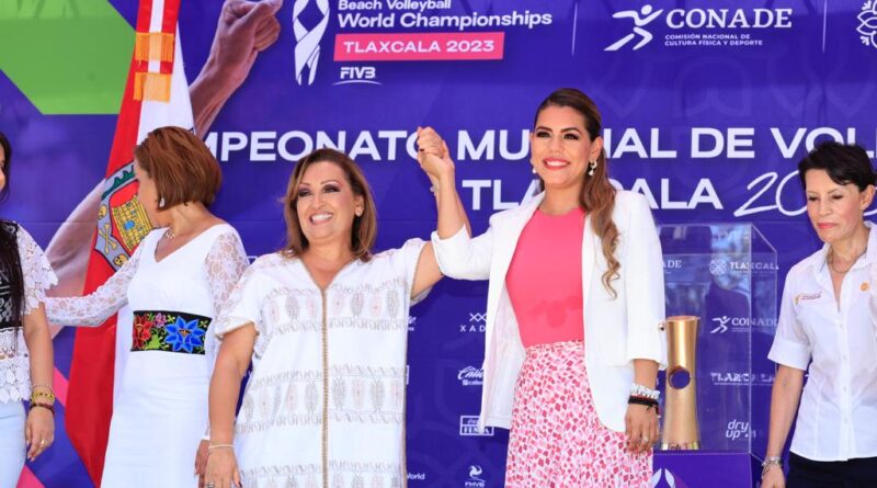 Como parte de las actividades de promoción del Mundial de Voleibol de Playa Tlaxcala 2023, la gobernadora del estado, Lorena Cuéllar Cisneros y su homóloga de Guerrero, Evelyn Salgado Pineda, develaron el trofeo que será entregado a los finalistas de la competencia internacional, a realizarse del 5 al 15 de octubre.