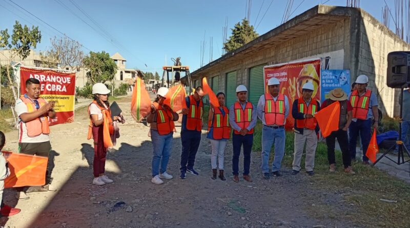 Valentin Meléndez dio banderazo para adoquinar calle en Segunda Sección de Teolocholco