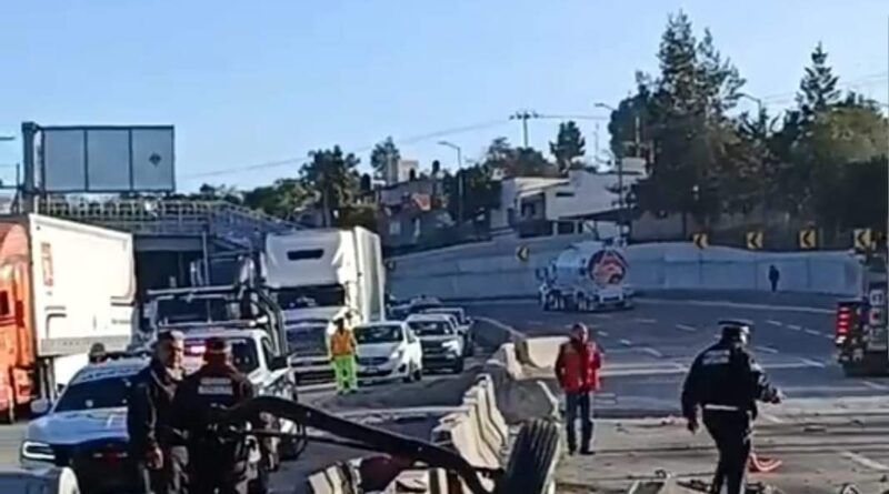Cerca de las 07:30 horas, un tractocamión que llevaba acoplada una tolva cargada con arena, volcó sobre la cinta asfáltica e invadió los 4 carriles con sentido a la capital.