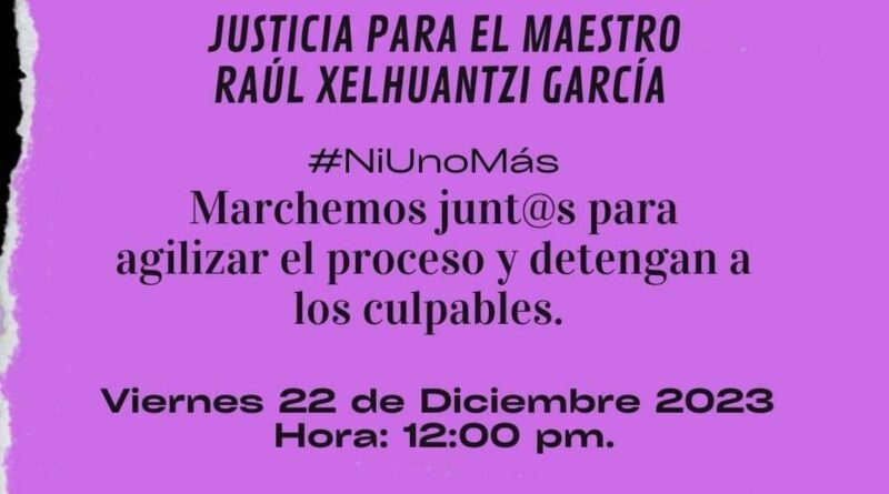 Los docentes se han pronunciado a favor de la convocatoria lanzada en redes sociales para que con el lema “nos falta Raúl” pidan por el joven maestro de 23 años que fue ultimado a balazos el jueves pasado en Tepetomatitlán, cuando se dirigía a su trabajo.