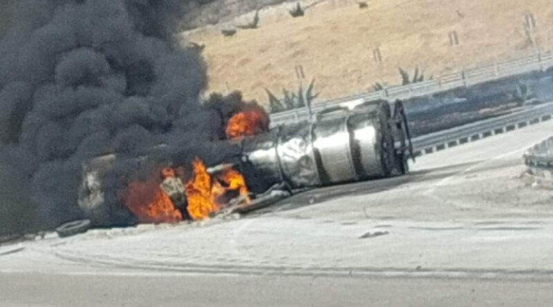 Vuelca y se incendia pipa de combustible en Sanctórum